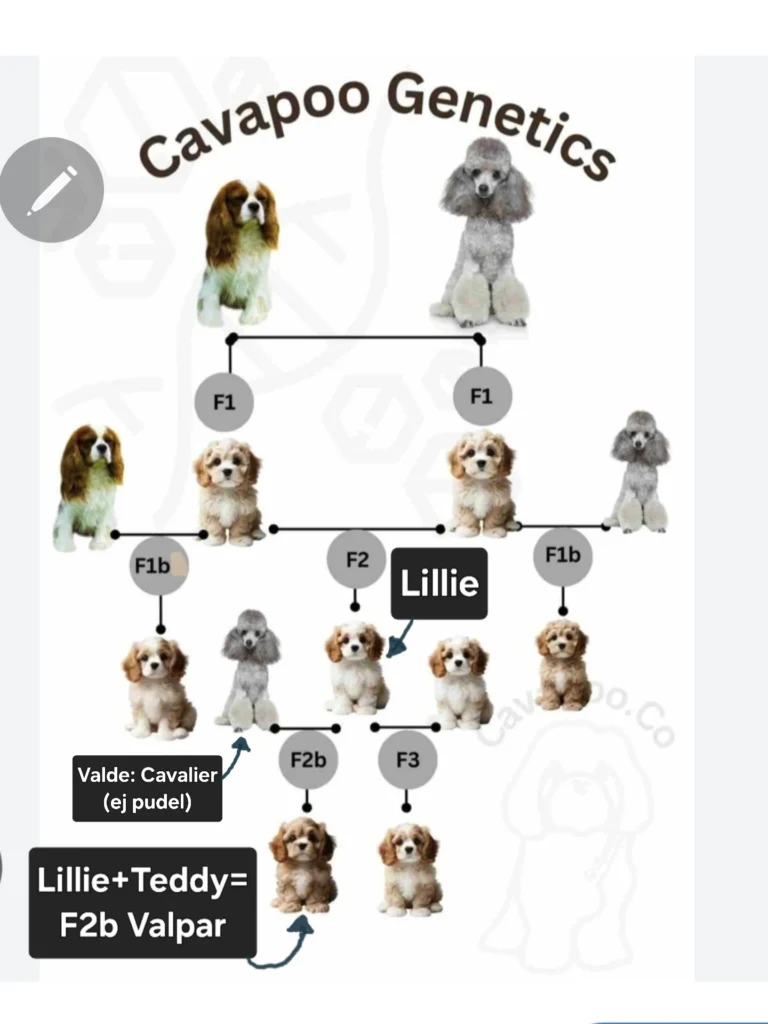 Initialt hade jag tänkt mig en renrasig Cavalier King Charles spanniel men pågrund av deras hälsoproblem tänkte jag om lite. Efter noggrant letande och många hund möten senare fann jag Lillies Uppfödare och tingade en valp efter hennes Cavapoo Doris. Både Doris och hanen Odie hade genomgått alla hälsotesten som rekomenderas av skk på raserna dvärgpudel och Cavalier King Charls Spaniel.